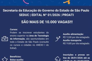CIEE oferta 64 vagas de estágio em Araraquara para alunos da área de Computação na SEDUC/SP