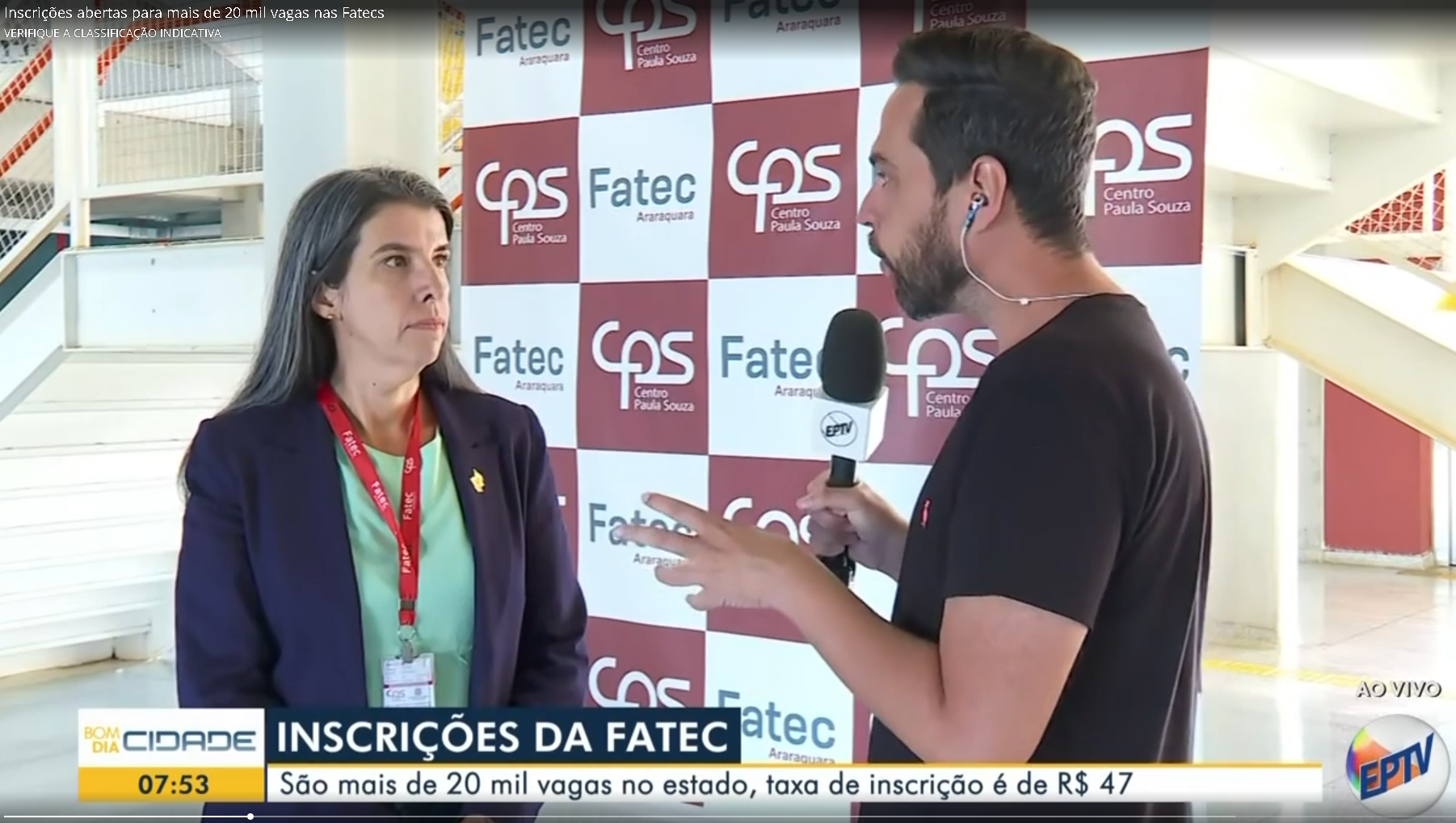 A diretora da Fatec Araraquara, Doutora Daniela Russo Leite, concedeu entrevista ao EPTV São Carlos a fim de divulgar o Vestibular para o 1º semestre de 2026.