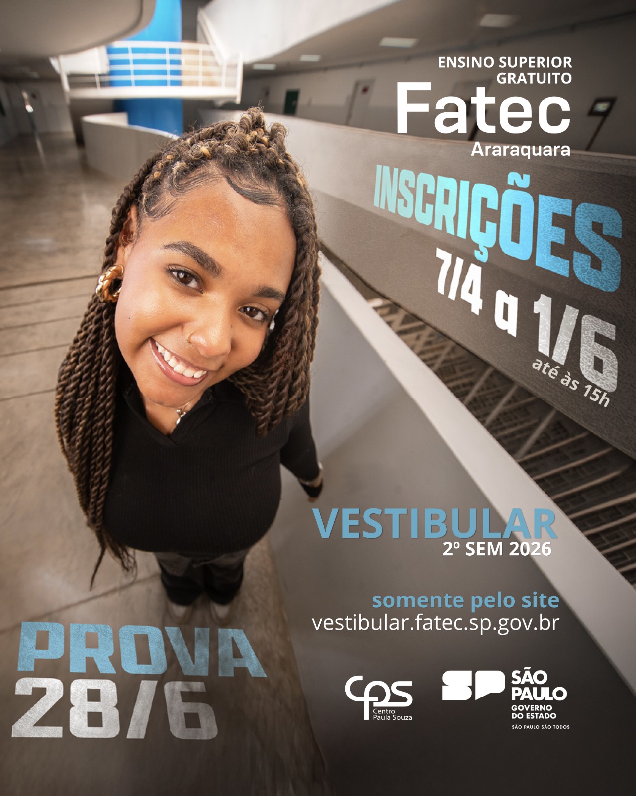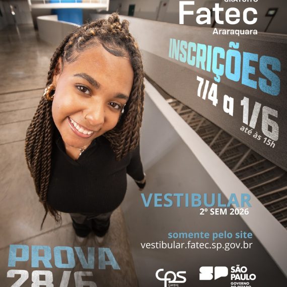 A Faculdade de Tecnologia de Araraquara (Fatec Araraquara) informa que estão abertas as inscrições para o Vestibular do 2º semestre de 2026, destinado ao ingresso nos cursos superiores de tecnologia oferecidos pela instituição: Análise e Desenvolvimento de Sistemas, Gestão Comercial, Gestão da Produção Industrial, Gestão Empresarial e Segurança da Informação
